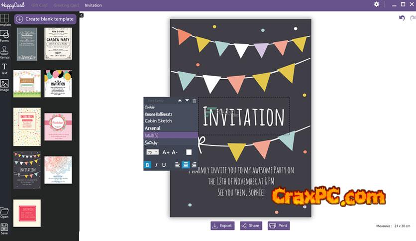 Whether you wish to construct a greeting card, invitation card, or gift card, HappyCard includes fifty professional card designs for occasions such as weddings, birthdays, parties, and condolences. Using the HappyCard design assistant, even novice creators can efficiently produce outstanding outcomes. It is straightforward, step by step.