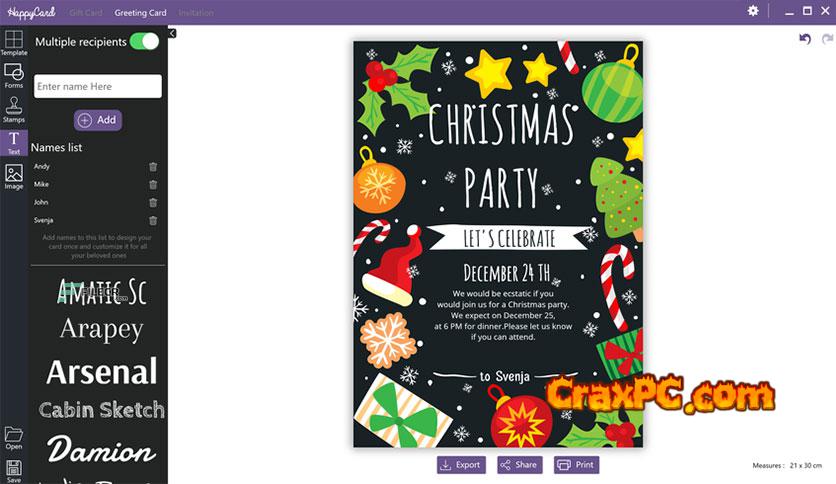 Invitation cards are printed once and distributed to an extensive number of visitors. With HappyCard, the names are exported accurately for each card and alter in accordance with your list. To expedite the process of sending your card to your peers, viewing it online is the most expedient method. Please forward the provided link to your acquaintances.