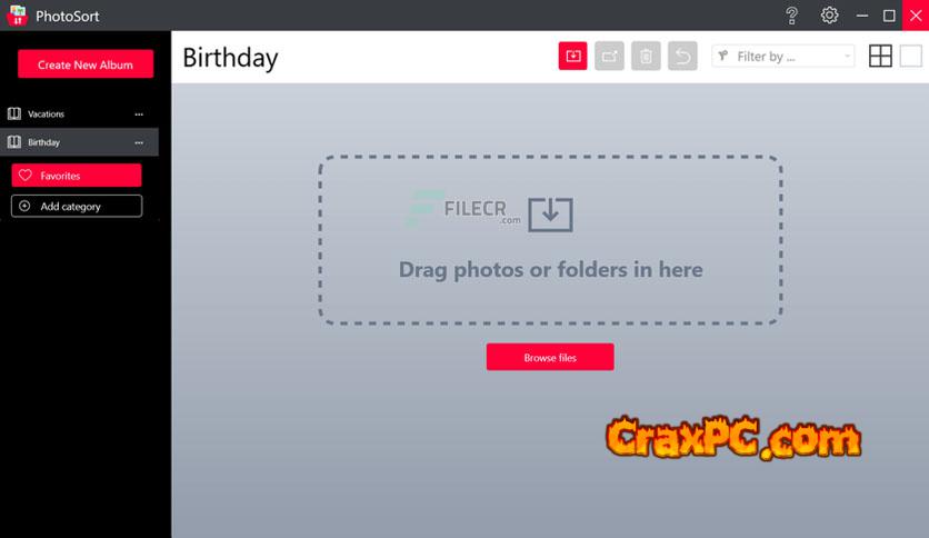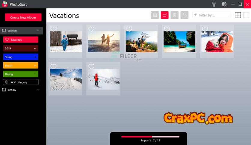 Even hundreds of photographs do not induce perspiration in the rapid program. Simply drag and drop them in, and arrange them according to your categories.