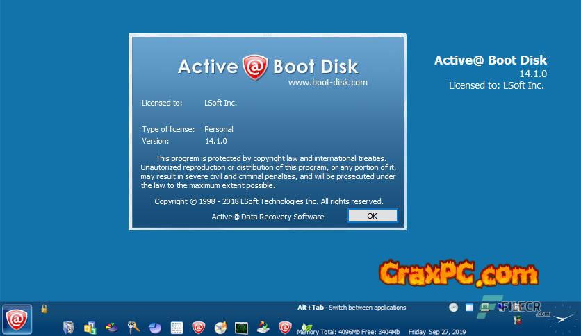 Active@ Boot Disk (recovery boot disk) can be installed on any bootable media; consequently, your BIOS boot priority settings must be modified. After the computer has booted from the bootable disc, its removal is secure. Dual-boot capabilities, supporting both DOS and Windows, are also feasible when utilizing optical media.