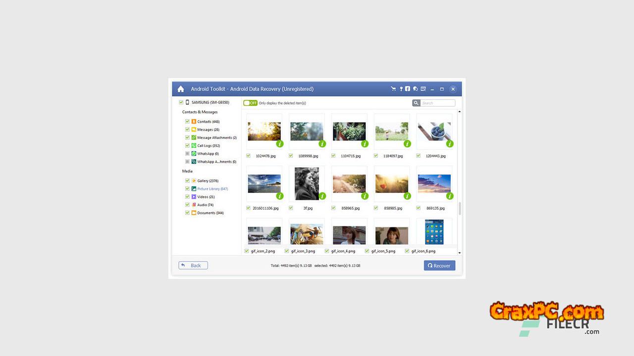 It is possible to recover and transfer the expunged data from an Android device to a computer running Windows 10/8.1/8/7/Vista/XP. Additionally, the Android Data Recovery software has the capability to preserve and create a backup of the pre-existing files on your computer. By utilizing an intuitive user interface, it is possible to retrieve deleted photos, contacts, messages, call records, and WhatsApp conversations from an Android device in a secure and timely manner. The entire contents are presented in the margin on the left.