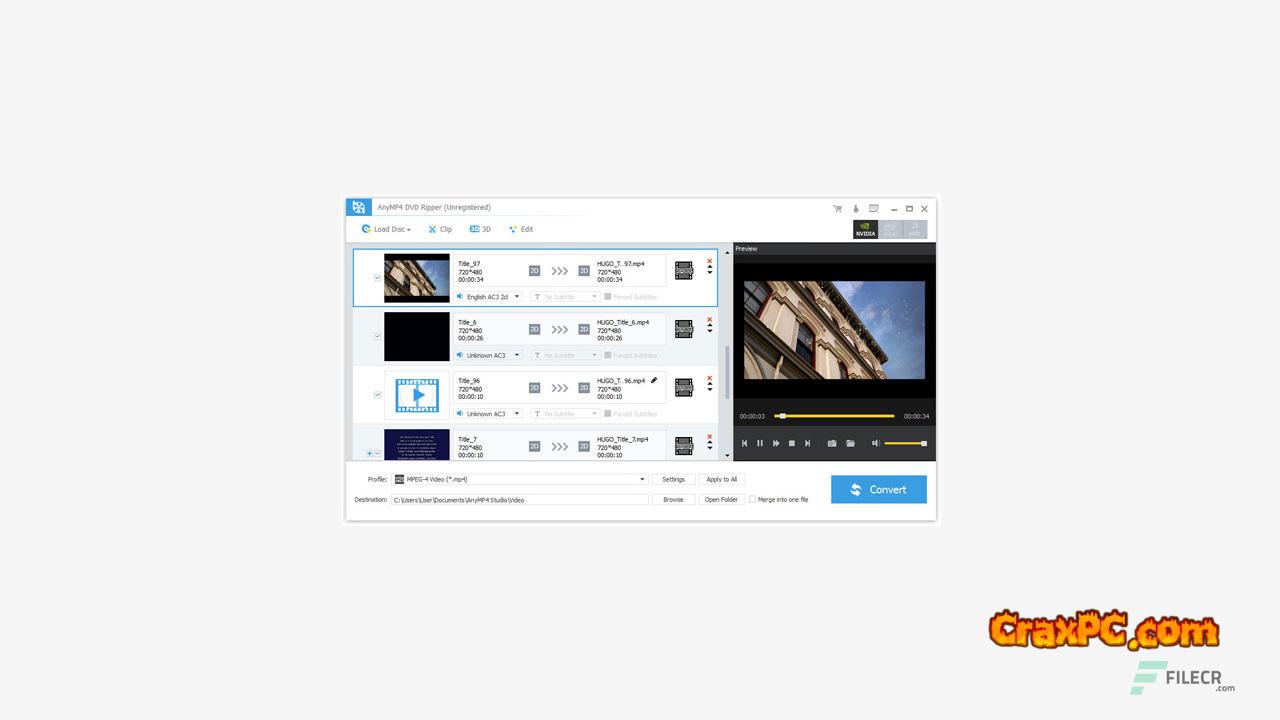 AnyMP4 DVD Ripper is a robust DVD ripping application that enables users to convert DVD movies to a wide range of widely used audio and video formats. It is effortless to convert DVD to various 4K/1080p/720p video formats, including MP4, MKV, AVI, MOV, WMV, FLV, M4V, TS, DivX, WebM, and 3GP. Subsequently, DVD can be saved to a computer for backup purposes. Furthermore, AnyMP4 DVD Ripper facilitates the extraction of audio recordings from DVDs and enables their conversion to a variety of preferred audio formats, including MP3, WAV, WMA, AAC, M4A, ALAC, FLAC, OGG, and others.