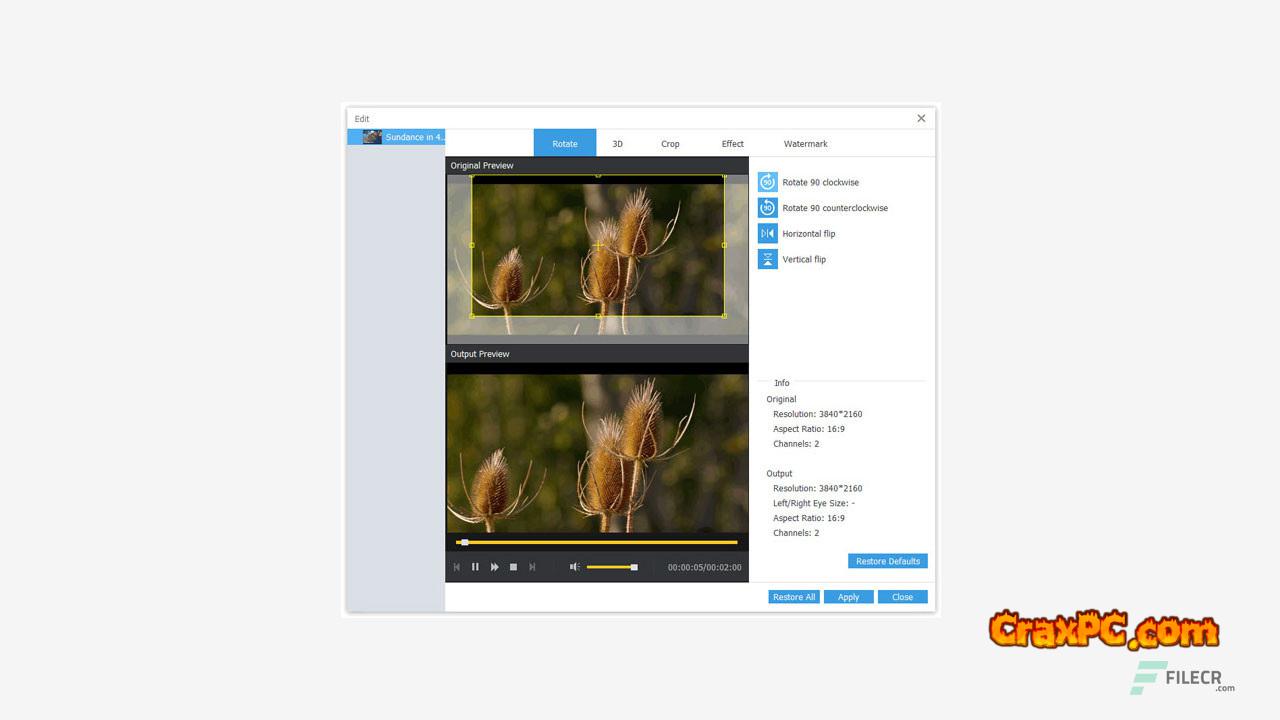 Rotate video, crop video, modify video effect, add watermark, and configure 3D effect when editing DVD video effects.