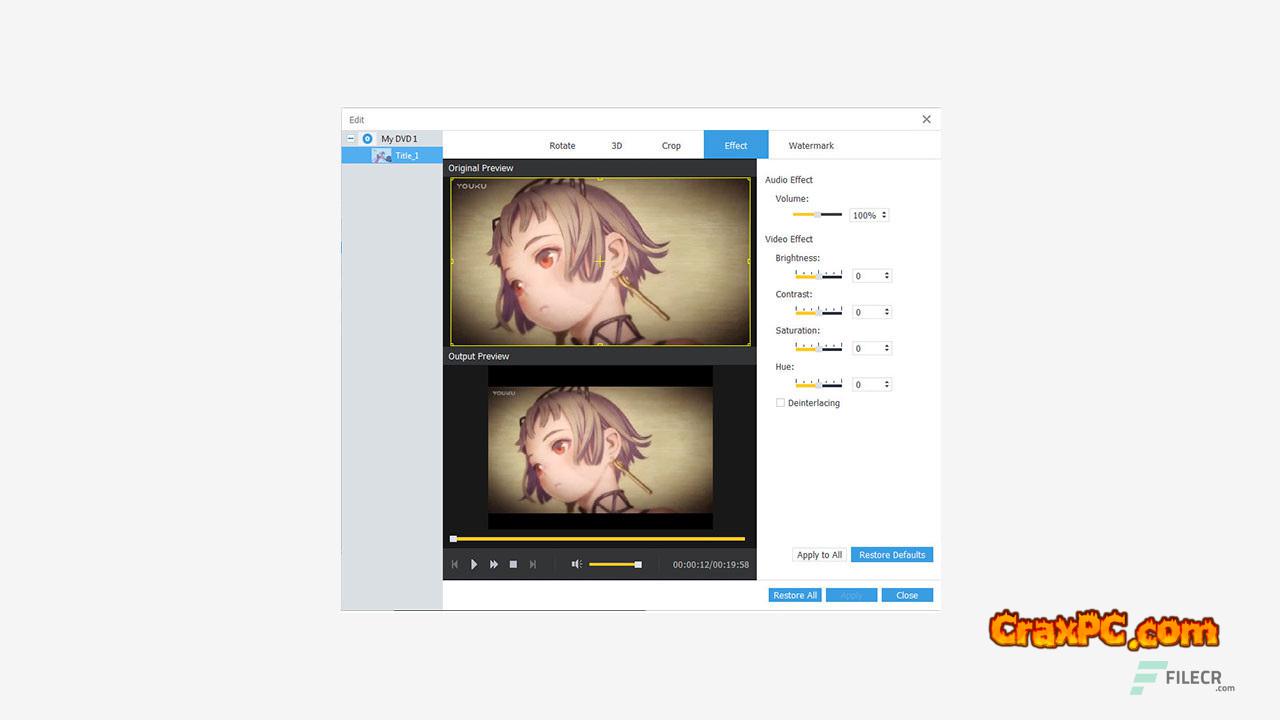 DVD to video ripping is possible with a straightforward user interface and a few keystrokes. This DVD Ripper will display every audio track and subtitle from the source DVD, even if the original DVD includes multiple audio tracks and subtitles. Subsequently, an output video’s preferable audio track and subtitle can be selected. The integrated device permits a preview of the DVD prior to ripping it. You can then rapidly examine the DVD titles that are desired. In the preview window, you can observe the video effects in real-time following video editing.