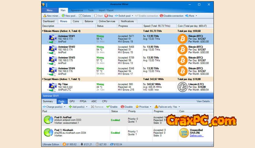 Download for free the complete version of Awesome Miner Ultimate, a standalone offline installer for Windows. A maximum of 5000 miners are overseen and managed centrally in relation to the mining of Bitcoin, Litecoin, Ethereum, and additional cryptocurrencies.