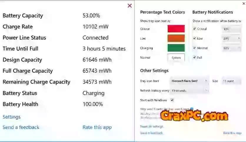 Battery Percentage Monitoring: You may quickly monitor your device’s battery life by viewing the current battery percentage right from the system tray icon.