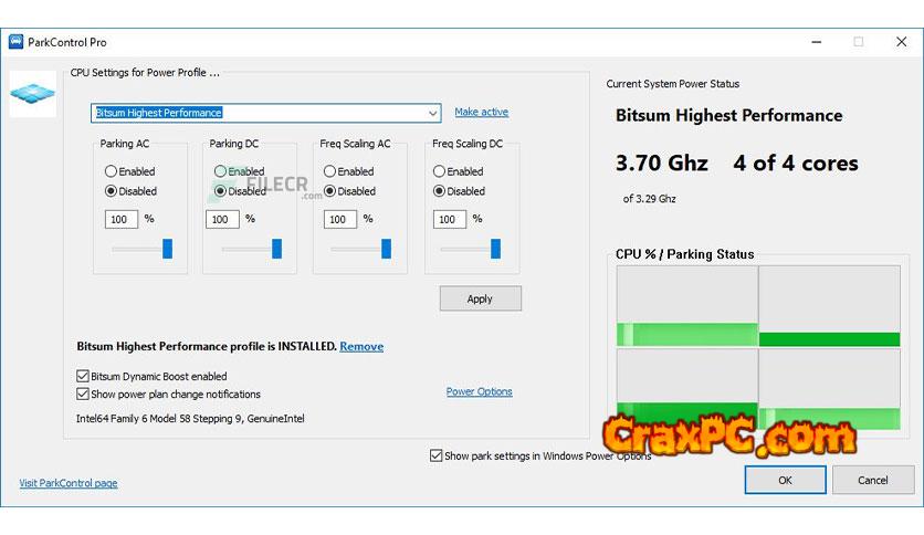 Bitsum ParkControl Pro complete version standalone offline installer for Windows is available for free download. Real-time monitoring and adjustment of CPU core parking parameters is possible.