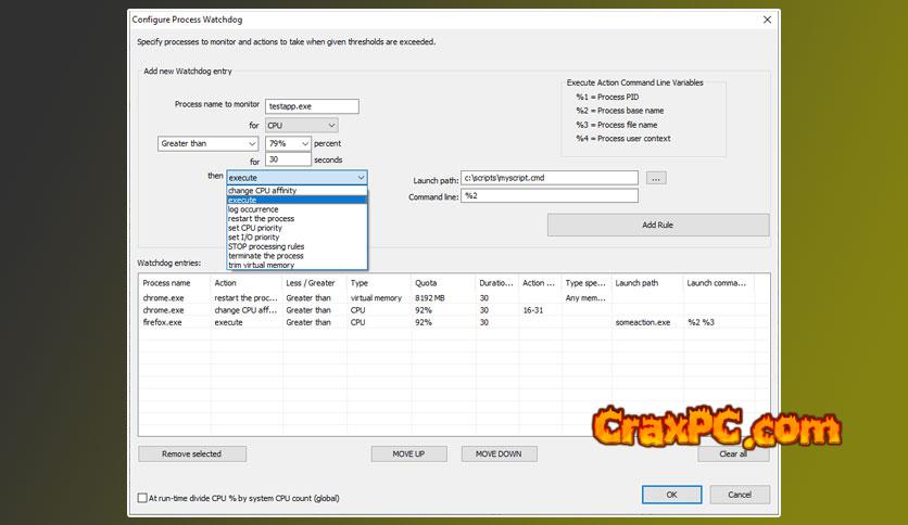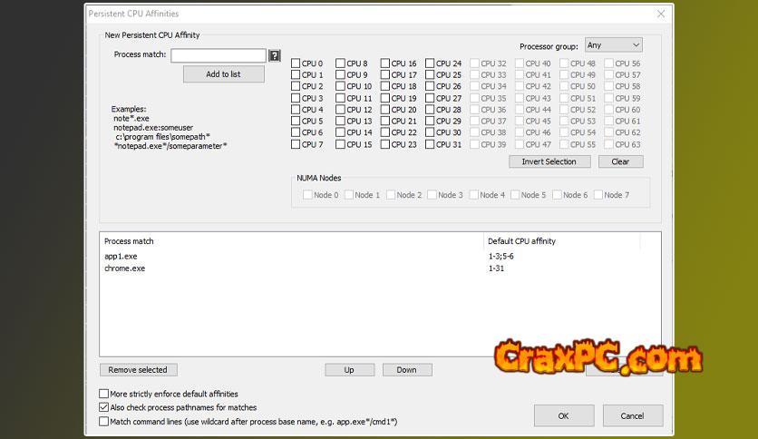 Persistent CPU Affinities and Priorities: Process Lasso enables the configuration of priority and CPU affinity for particular processes, which are then implemented automatically with each execution of those processes.