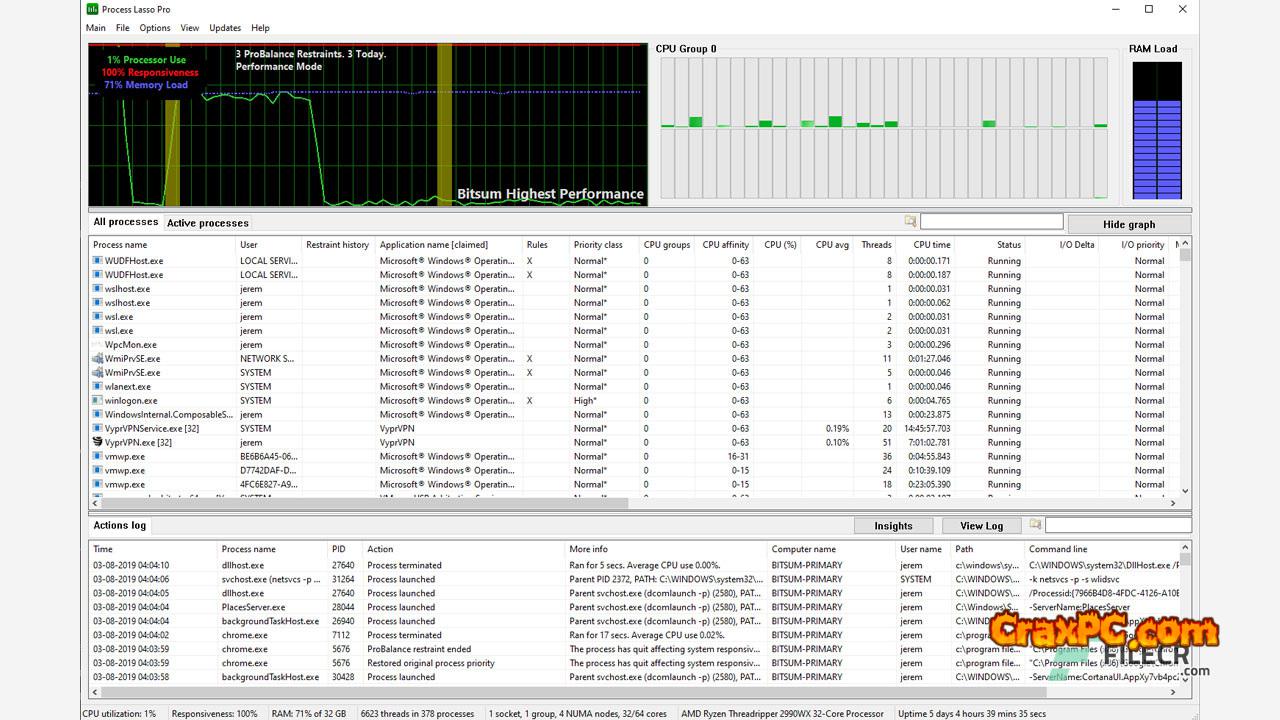 Bitsum Process Lasso Pro complete version standalone offline installer for Windows, which automatically adjusts the priority class and CPU affinity of complex background processes in an intelligent and dynamic manner, can enhance the responsiveness and stability of your computer.