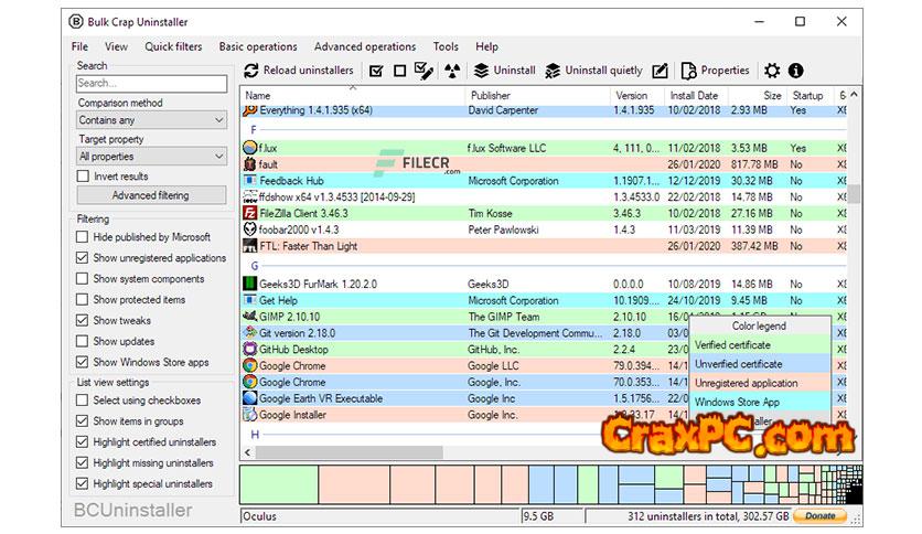 Bulk Crap Uninstaller’s features