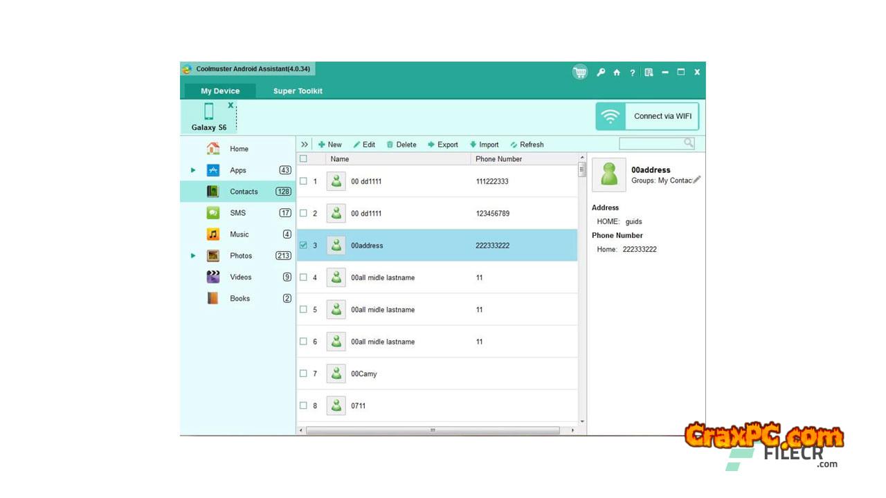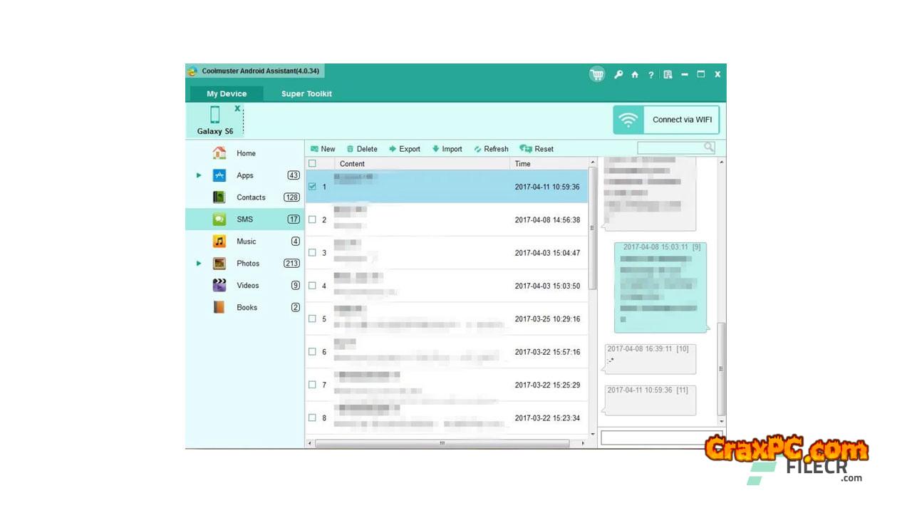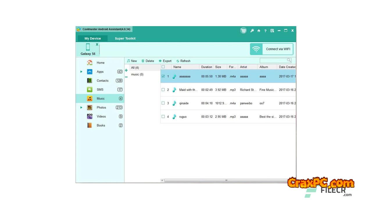You may export contacts, SMS, call logs, music, pictures, videos, apps, and more from your Android phone or tablet to your PC with Coolmuster Android Assistant 4 to make room on your Android device for new stuff. Furthermore, you may use a single click to import contacts, SMS, call logs, pictures, videos, music, apps, and more from a computer into an Android device.
