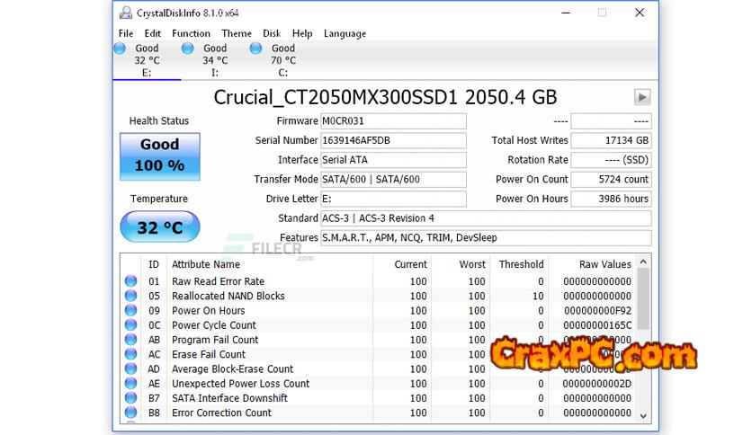 This tool gives you an overall evaluation of the “health” of your drive and allows you to monitor the condition of hard drives that use SMART technology. It also shows comprehensive details (flash, serial number, standard interface, total time, etc.) about the hard disks that are installed in your computer. Additionally, it shows the characteristics of the SMART self-test parameters (read errors, performance, spindle start/stop, seek time, number of on/off cycles, mistakes, and many other sectors).