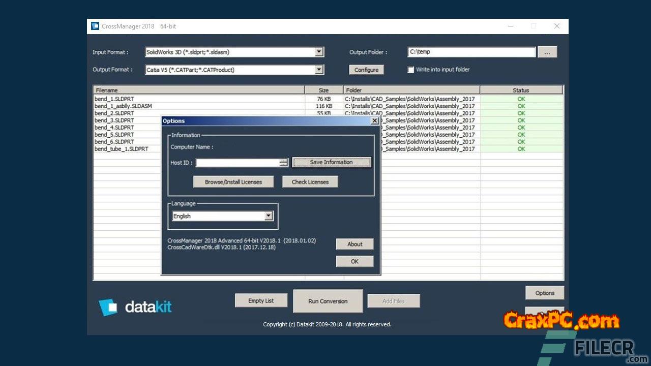 No Cost Download As stand-alone software, DATAKIT CrossManager for Windows PC enables the conversion of files from the majority of CAD formats. Cross Manager requires the selection of one or more CAD files for automatic translation into the desired format.