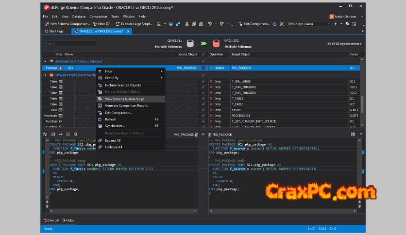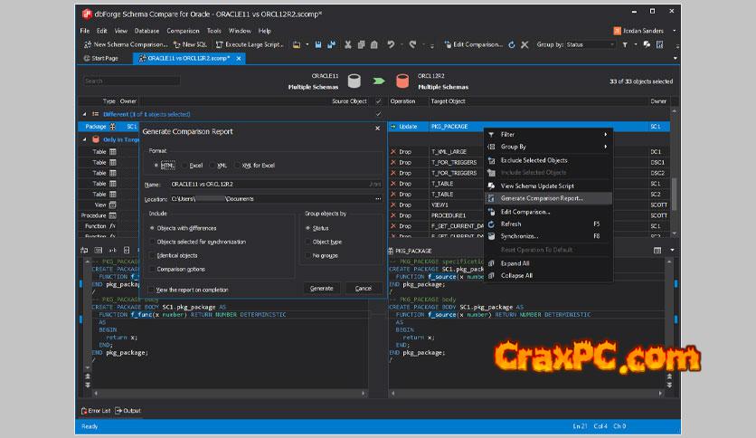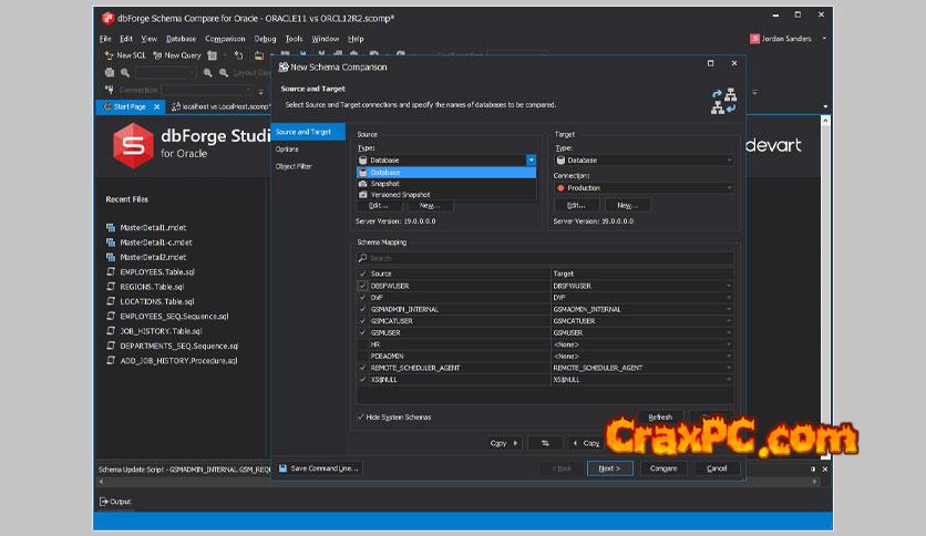 Devart dbForge Schema Compare for Oracle full version standalone offline installer for Windows is available for free download. This all-encompassing application synchronizes and compares schemas across backups, snapshots, databases, and script folders.