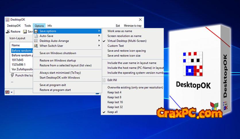Download SoftwareOK for Free DesktopOK offline standalone installer for Microsoft Windows. In addition to preserving and restoring the positions of all desktop icons, this practical application offers a few additional tools to facilitate the process.