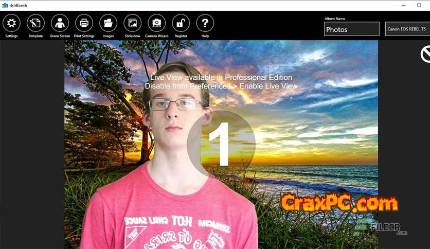 To create a professional photo booth, connect your Canon, Nikon, Sony, or Webcam to the free full version of dslrBooth Professional photo booth software for Windows PC.