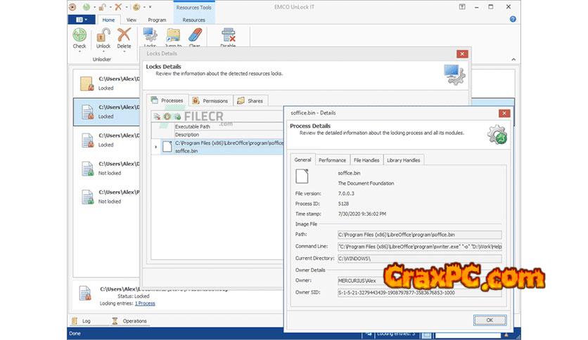 It can also terminate benign system processes, as well as processes infected with malware, trojans, and other forms of spyware that are protected from termination. It provides access with a single click to examine any resource for restrictions and, if necessary, unlock them.