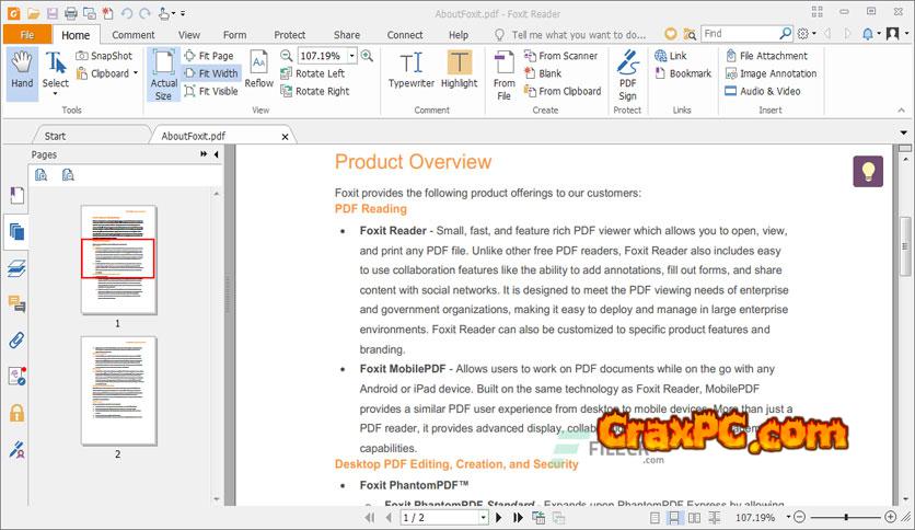 No Cost DownloadThe PDF Reader, the most recent offline installer for Windows PC from Foxit Reader, connects you to the rest of the world. Authors can receive feedback on documents, be notified of the release of new versions, engage in discussions regarding intriguing subjects within the document, or securely access protected documents.