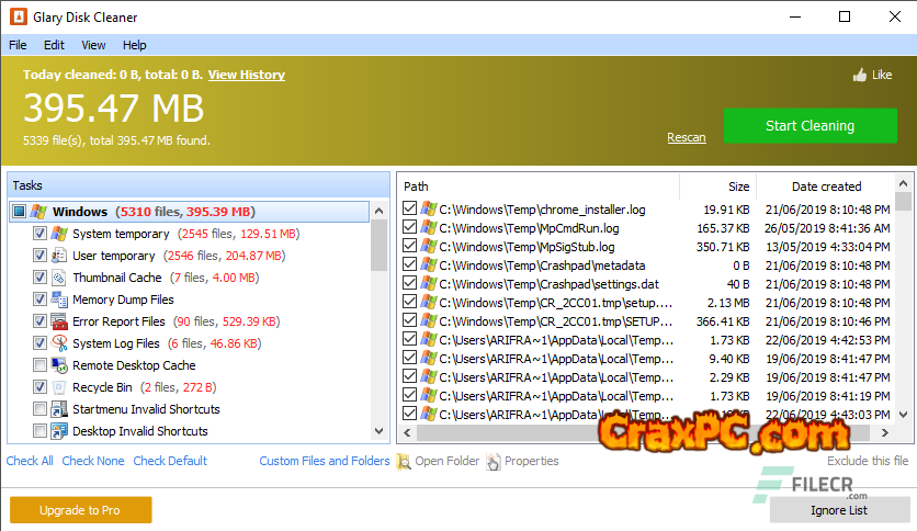The most notable feature of this tool is its straightforward and intuitive user interface. Its tasks menu and results panel are separated into a single window. using only one click, you can remove unnecessary files from Windows, installed apps, and web browsers using Glary Disk Cleaner.