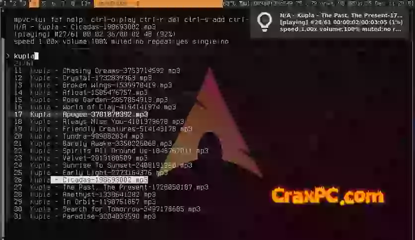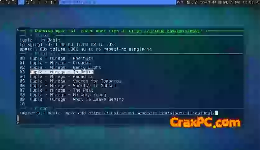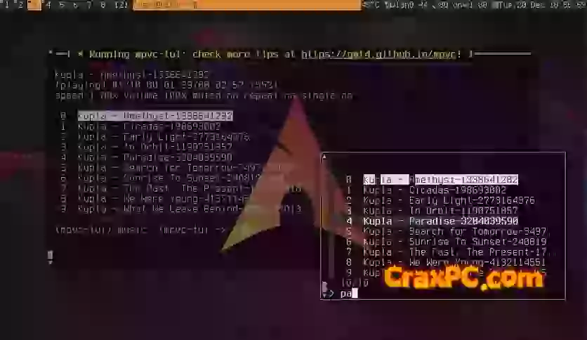 Text-based User Interface (TUI): Accompanying the command line interface (CLI), it provides a text-based user interface that facilitates content browsing, selection, and playback through a more intuitive means.