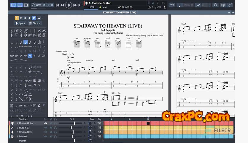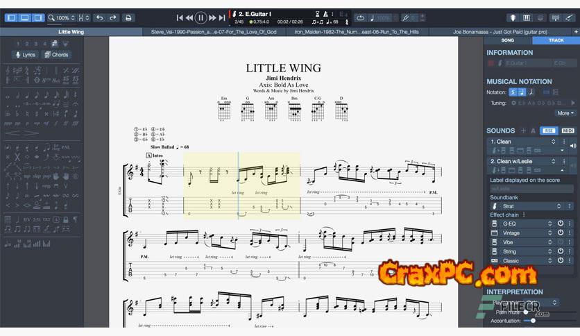 Guitar Pro complete version standalone offline installer for Windows is available for free download. It permits users to modify guitar, bass, and ukulele tablature and music scores, as well as generate backing recordings for the piano or drums. This is an incredibly all-encompassing yet intuitive instrument for musicians who wish to improve, compose, or play along.