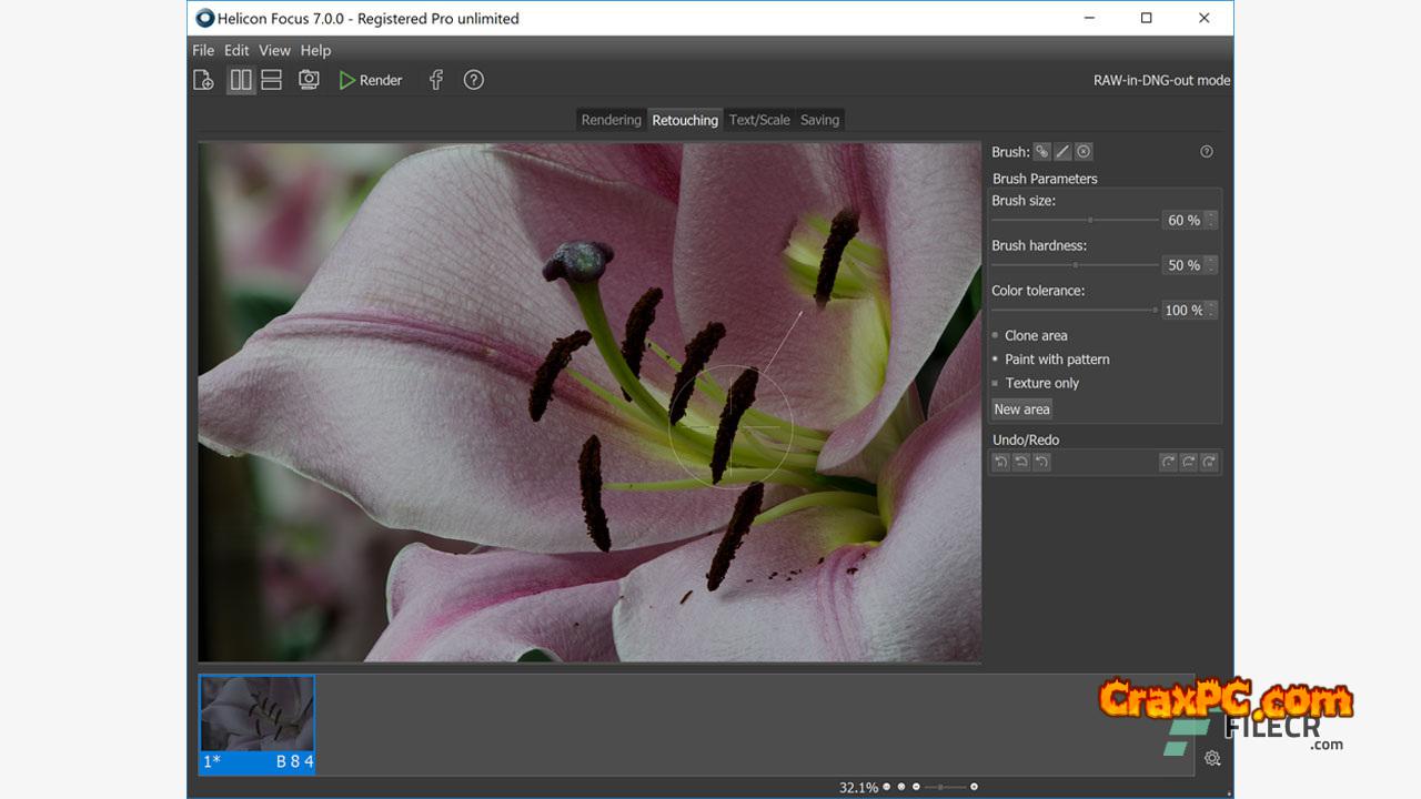 precise representation of color Simple and effective RAW development Cutting edge processing algorithms Options for advanced interpolation Multiple cores for processing No longer is stack length a limit. 64-bit compatibility Utilizing all of your processor’s capabilities Mode: RAW-in-DNG-out Astute photo editing supporting grid Scale of science Divide and arrange stacks. Command-line Easy connection with Helicon 3d Viewer in Lightroom Making a small-scale panorama