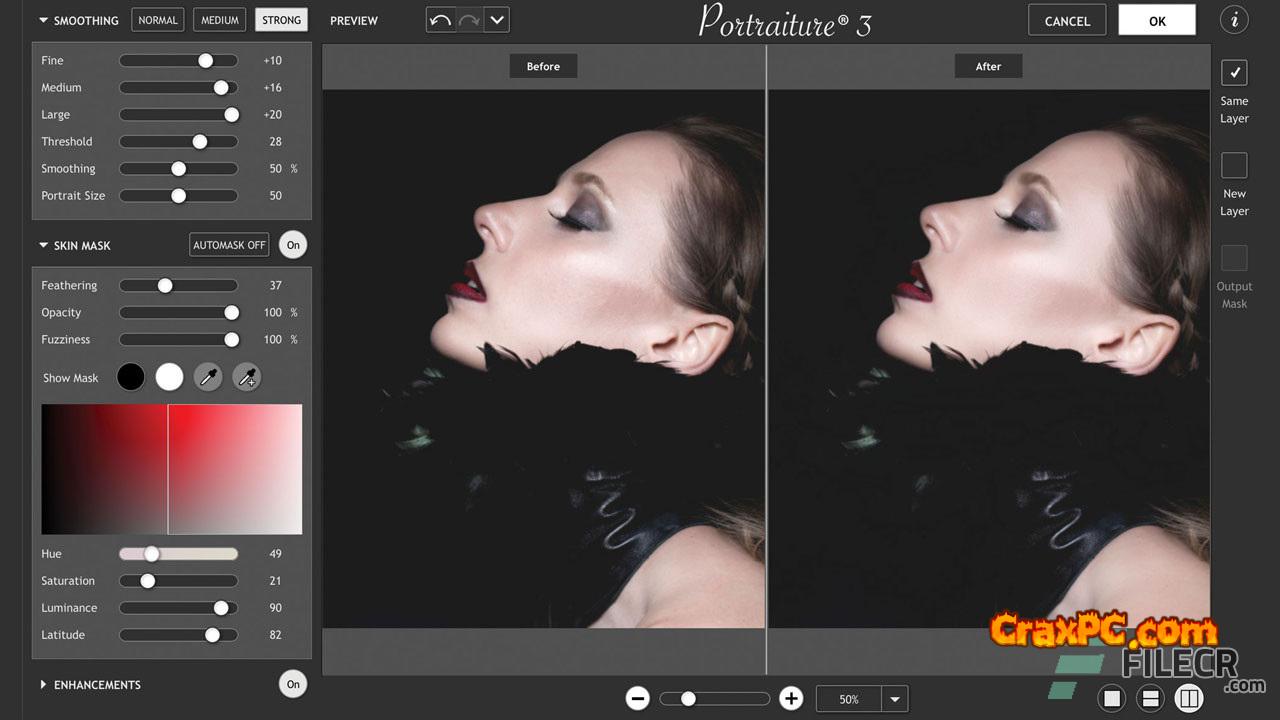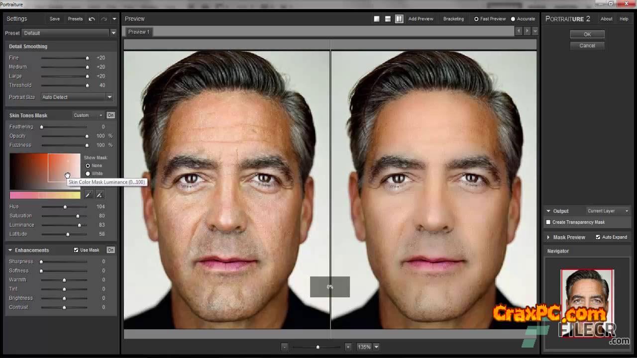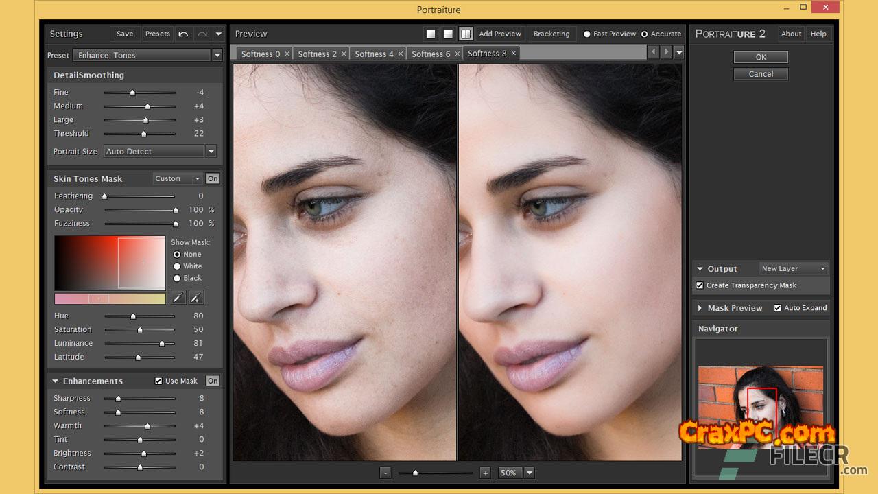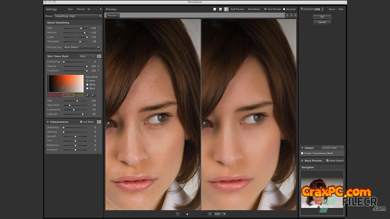 To help you reach perfection in portrait retouching, the free download Imagenomic Portraiture plugin for Adobe Photoshop and Lightroom removes the tiresome manual labor of selective masking and pixel-by-pixel treatments.