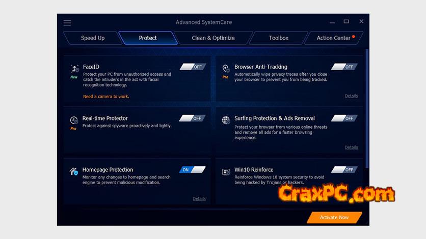 In real-time, Advanced SystemCare Pro guards against ransomware and spyware, DNS-based attacks, tracks user activity on the Internet via cookies and advertisements, and blocks websites that may be phishing or pose other online threats. Safe and comfortable Web browsing is ensured by the program’s ability to block pop-ups in browsers and its ability to force external programs to change the home page.