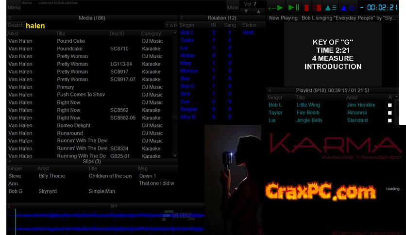 Karma is a time-saving and robust product that is the result of years of research into every known method of operating karaoke performances on a personal computer. Karma frees you from engaging in more pleasurable activities, such as interacting with the crowd or even taking a break, by eliminating numerous time-consuming duties.