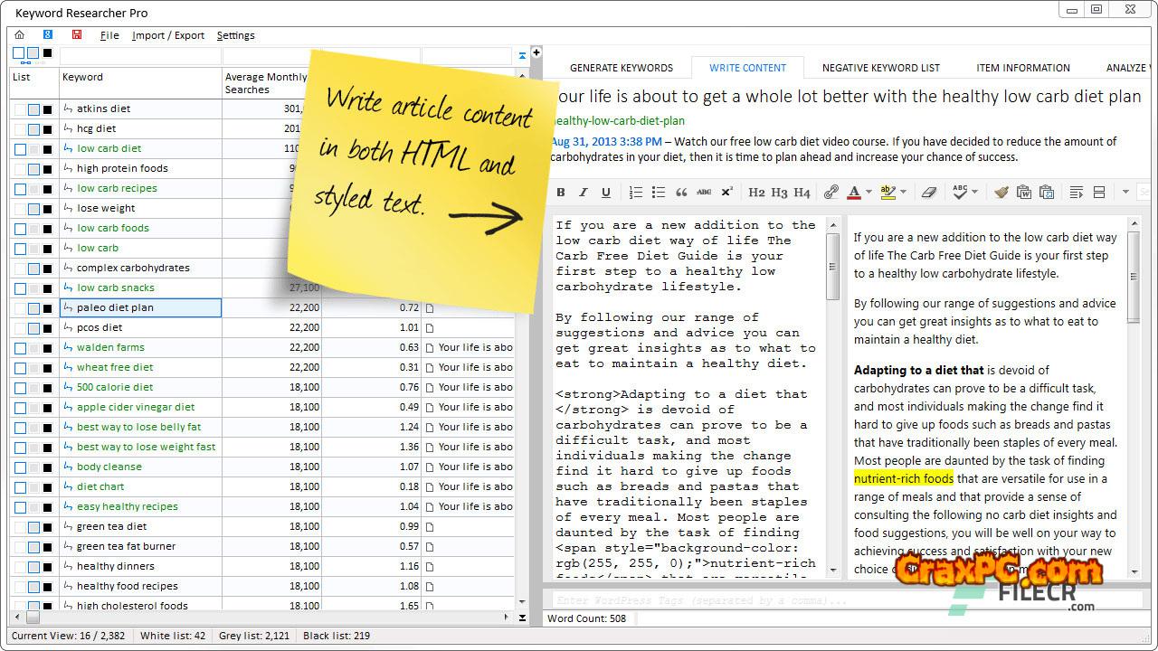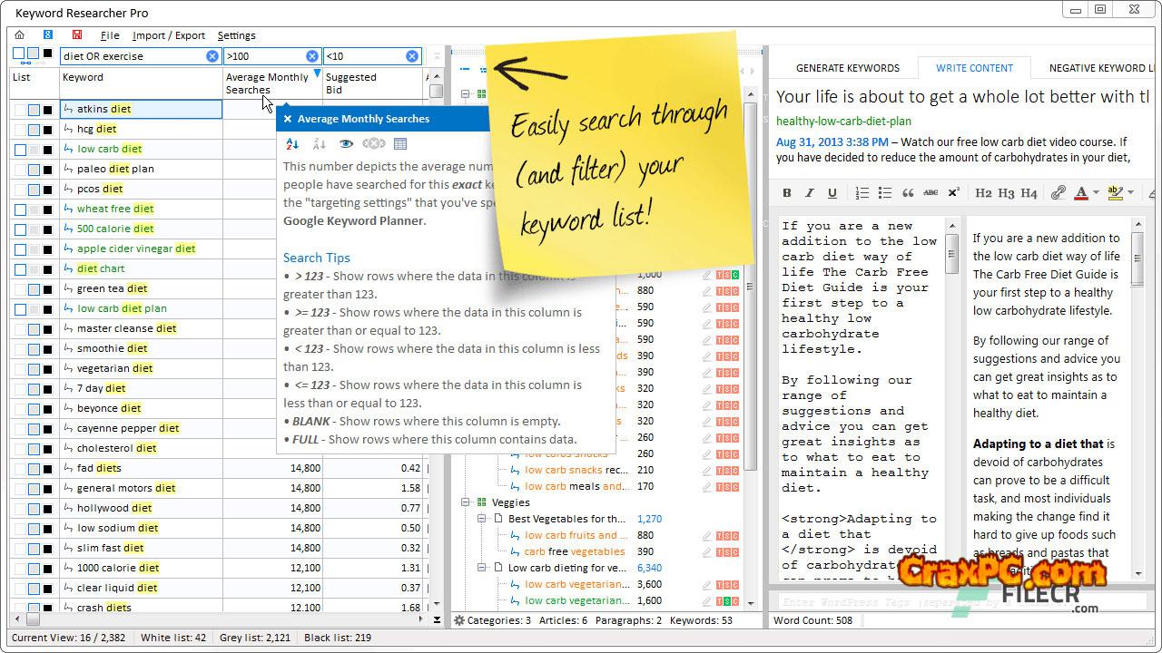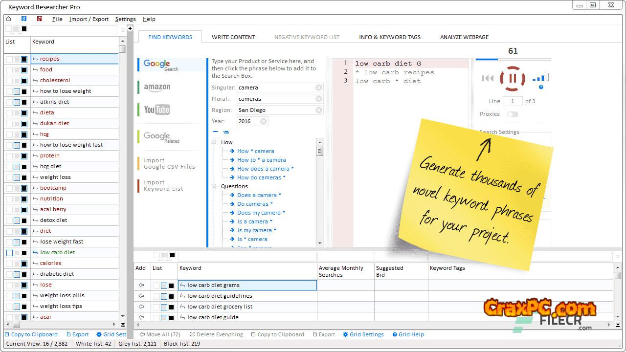 A user-friendly keyword discovery tool, Keyword Researcher Pro complete version standalone offline installer for Windows PC is available for free download. By emulating human behavior with Google Autocomplete, it enters thousands of queries into Google on a repetitive basis.