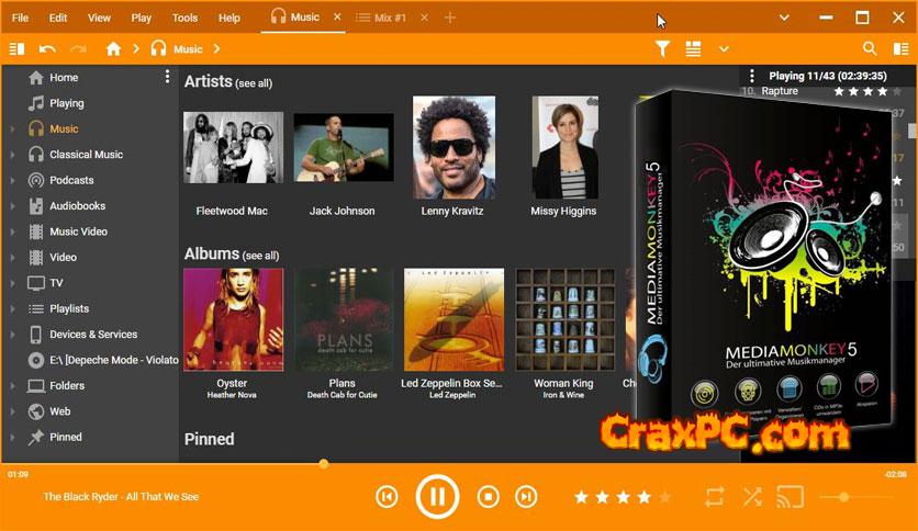 A CD ripper, a CD/DVD burner, an audio converter for storing music, and manual or automatic playlist editors for mixing music are all included in MediaMonkey. In order to synchronize playlists and songs with iPods and other portable audio devices, it also has portable audio device synchronization.