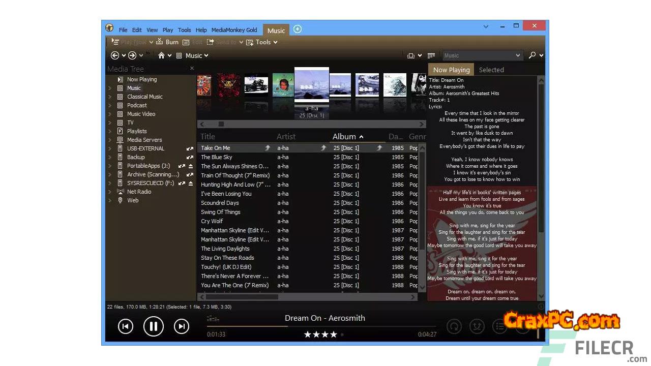 A robust tool for managing audio and video file collections is MediaMonkey Gold. This application allows you to organize the media collection so that the files may be accessed as conveniently as possible in addition to cataloging them.