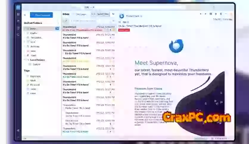 Mozilla Thunderbird is an RSS feed reader and fully-featured, highly functional, and secure email client. It provides an aesthetically pleasing and refined interface for a robust email suite, enabling you to manage mail with efficiency and elegance. Additionally, Thunderbird effectively eliminates unsolicited email.