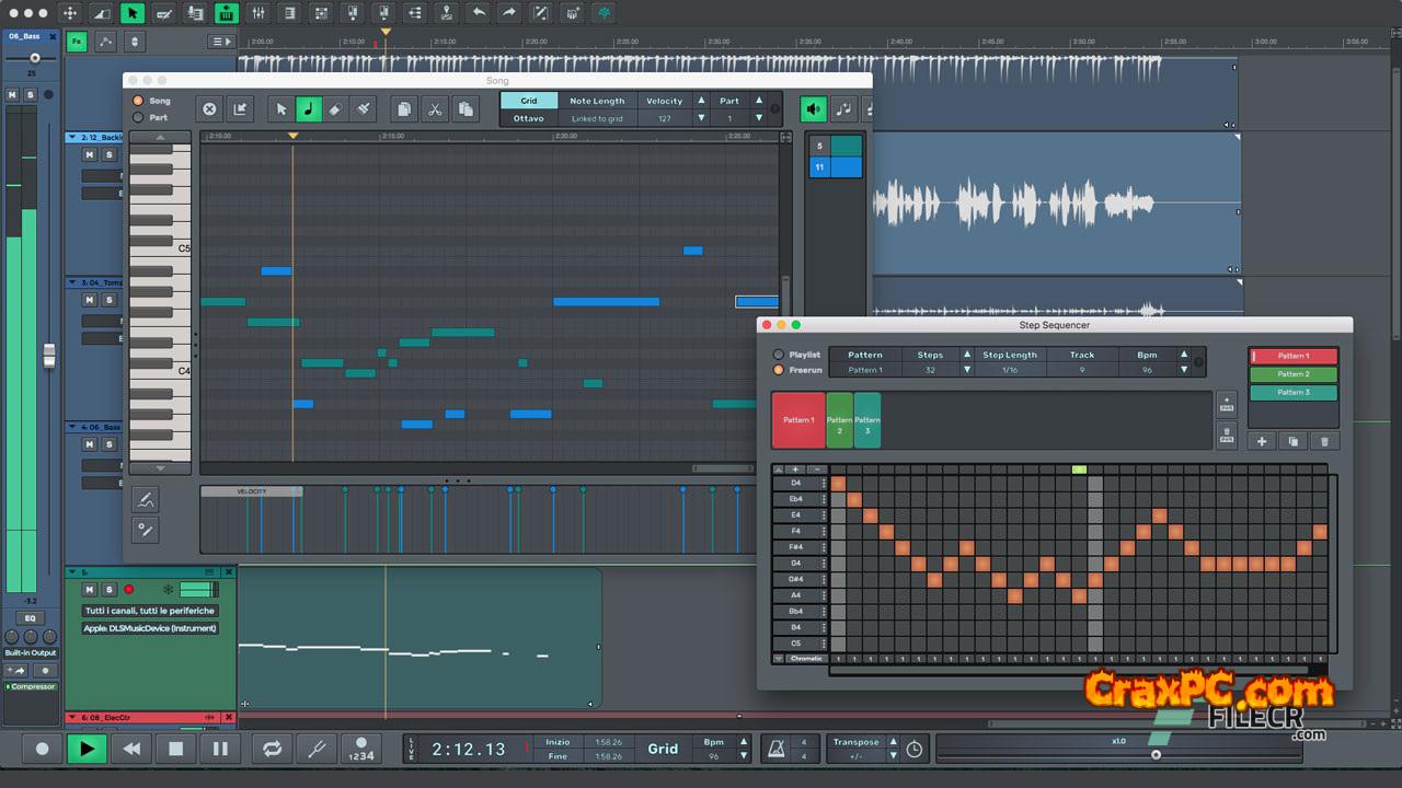 Step sequencer, piano roll, drum kit, guitar amplifier, bass amplifier, vocal tune, and songtree integration