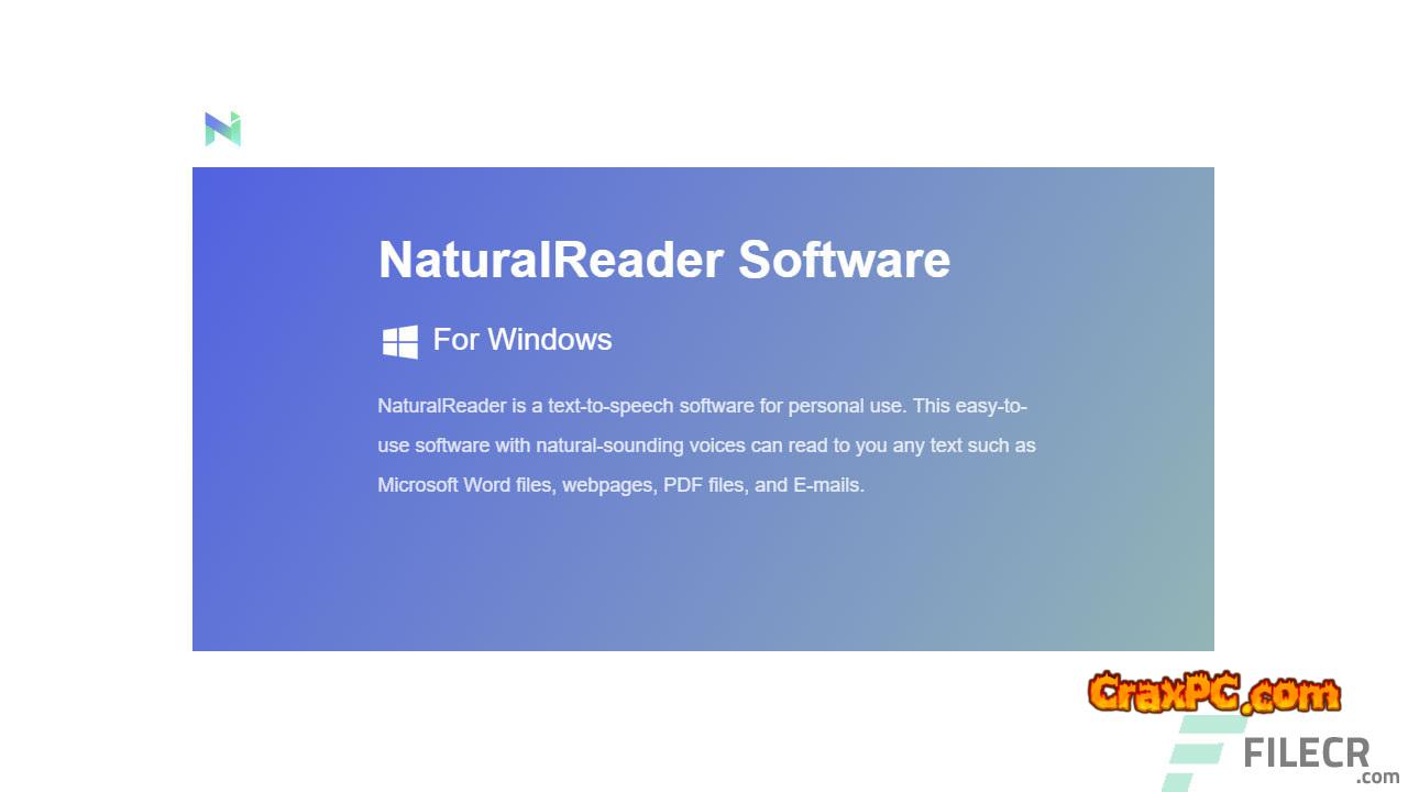 For Windows computers, get NaturalReader Professional / Ultimate 16 for free. It is a personal text-to-speech program. You can get any material read to you, including emails, webpages, PDF files, and Microsoft Word documents, with this user-friendly program that has realistic-sounding voices.
