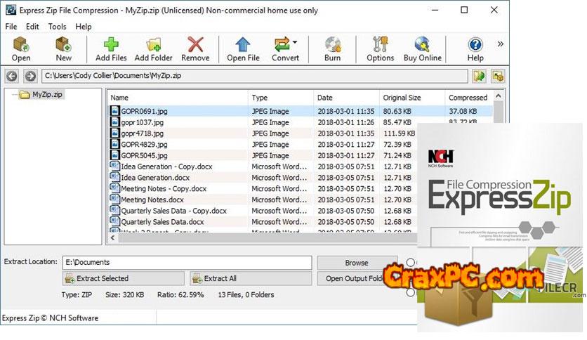 The archiving and compression application NCH Express Zip Plus Full Version Standalone Offline Installer for Windows is available for free download. It enables the creation, management, and extraction of compressed files and folders.