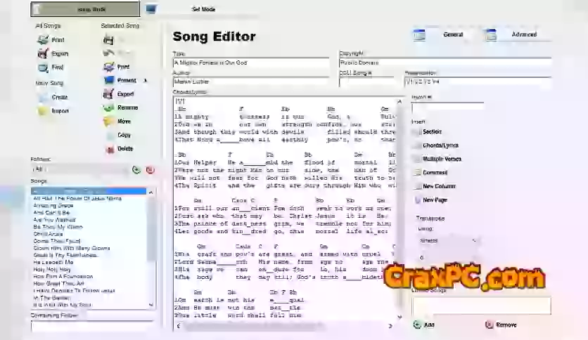Although there is a noticeable religious impact in the music database that is offered, the tool’s uses are not limited to places of worship. It works well for poetry readings, open forums, and other occasions where a text-and-chord combination improves the entire experience.