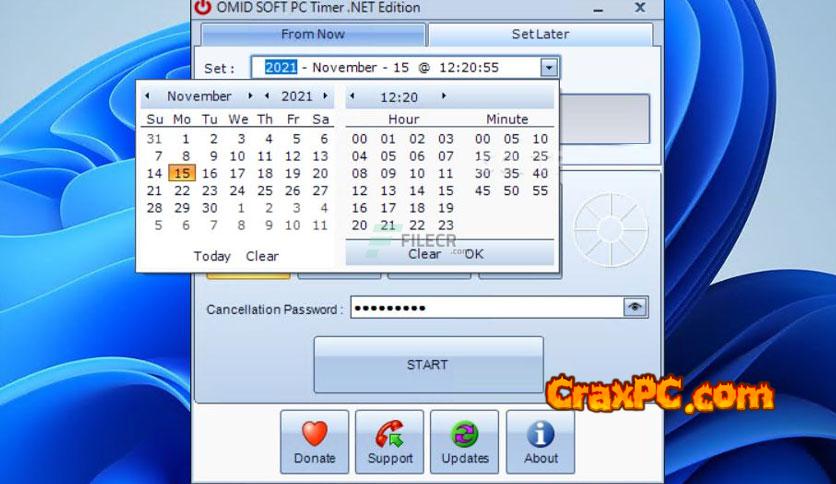 A designated section enables the scheduling of subsequent task executions. Using a calendar and clock selector simplifies the process of establishing the time of execution. In the lower portion of the primary window, a list of the capabilities of PC Timer.NET is displayed. Alternate methods include powering down, restarting, shutting down, or configuring the application to lock out the currently logged user. Scheduling computer hibernation is not feasible using a PC Timer.NET.