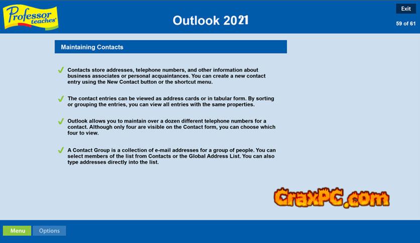 Get the entire version of Professor Teaches Outlook for Windows in a free standalone offline installation. Discover all of Microsoft Outlook’s features.