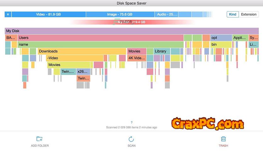Using the application is a breeze. After being launched, the software allows you to inspect any accessible drive or add a folder for analysis. The scan is concluded in a timely manner, thus there is no need for an extended wait. Once the data has been collected, the program presents a summary and a chart containing the most important files to locate. Then, they can be categorized according to size, type, extension, or date.