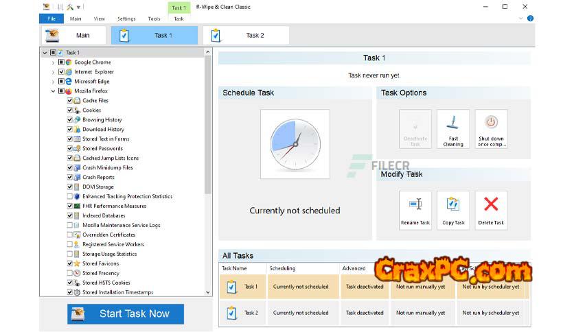 Scratch files, temporary directories, system data, and other activity traces left by numerous third-party applications can all be removed by the program. All of the smaller computer cleaning and file deletion jobs can be combined into one big task that can begin right away or at predetermined periods or occasions.