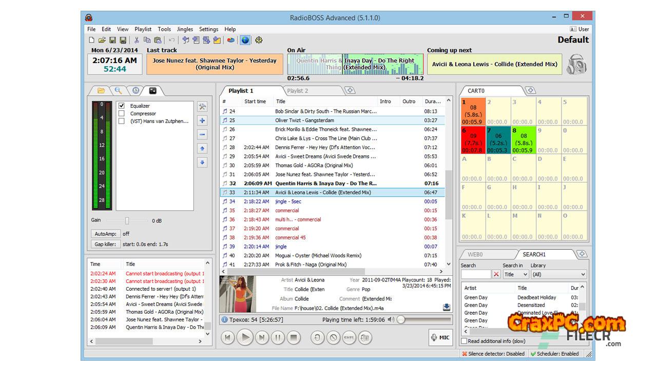 No Cost Download, Converting and managing audio assets, creating playlists with advertising support, hourly blocks, rotations, crossfading, automatic leveling, and other professional-grade features, and streaming playlists to a local, terrestrial, or Internet broadcasting system are all simple and quick processes with RadioBOSS Advanced for Windows PC.