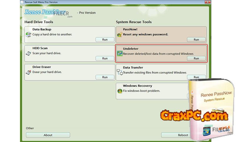 With just a few mouse clicks, the utility can instantly generate a live medium for data recovery because it is capable of automatically identifying inserted CDs or USB drives. The application offers a number of recovery tools that let users recover data lost in the event of a system failure and reset forgotten passwords.