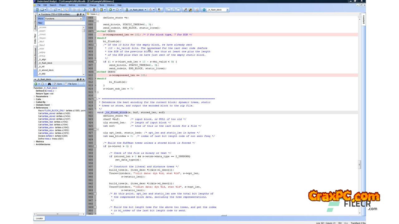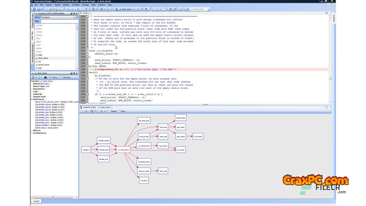Understand 5, often called SciTools, gives important details about your code. See all of the details of variables, classes, functions, and other elements quickly, along with how to use, call, alter, and interact with them. Call trees, metrics, references, and any other code-related information are all readily visible.