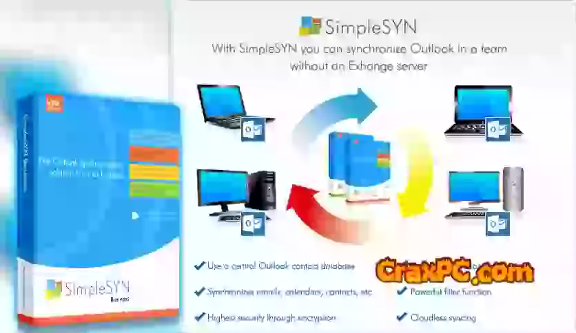 SimpleSYN Business is available for Windows PCs at no cost. It is intended to provide a straightforward Outlook synchronization solution to all businesses, enabling groups to use the well-liked email client together. It may easily distribute data amongst users by maintaining synchronization of all Outlook folders across various Windows computers.