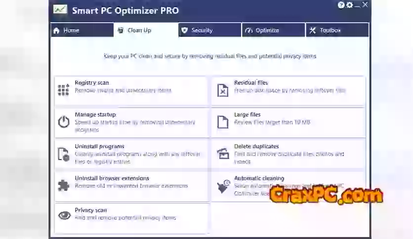 Windows users can download Smart PC Optimizer PRO for free. It is a comprehensive application that is specifically engineered to clean and optimize your computer in an automated fashion, thereby guaranteeing its seamless and efficient operation. Its extensive feature set, which includes registry optimization, unwanted file removal, and privacy protection, makes it the ideal solution for users seeking a hassle-free way to enhance the performance of their computer.