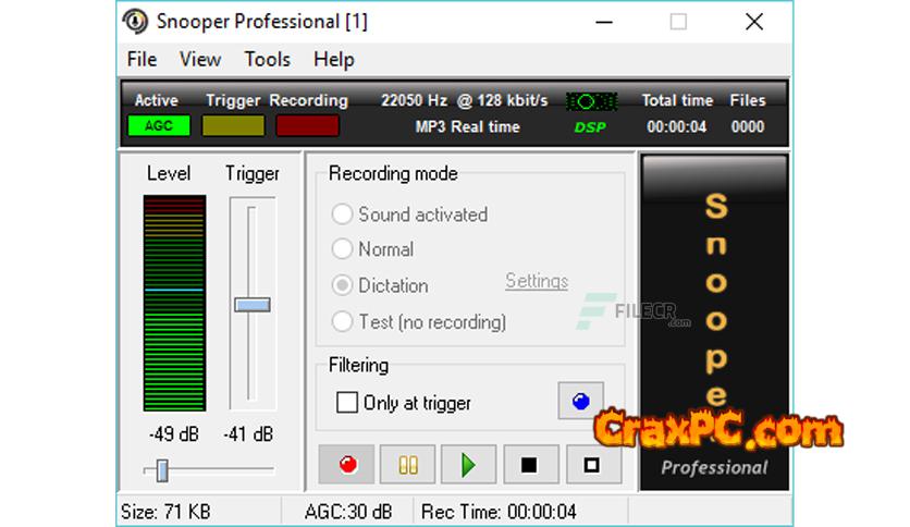 Snooper Professional complete version standalone offline installer for Windows is available for free download. It is a program that initiates audio recording upon detecting sound.