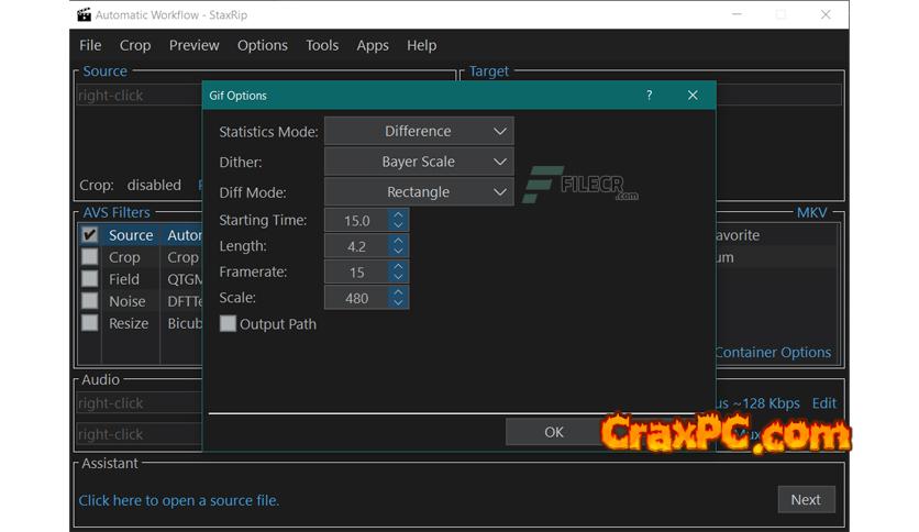 Audio Output Formats: Ogg Vorbis, MP3, AC3, AAC Formats for Container Output: AVI, MP4, MKV, WEBM. Hardware encoding for HEVC. Needs.NET 4.6.1. StaxRip’s features