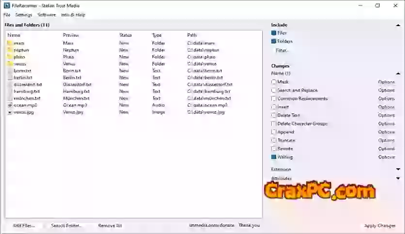 Stefan Trost File Renamer for Windows PC can be downloaded for free. It is a flexible utility for renaming files and folders. It simplifies the procedure by enabling you to rename several files or directories at once.