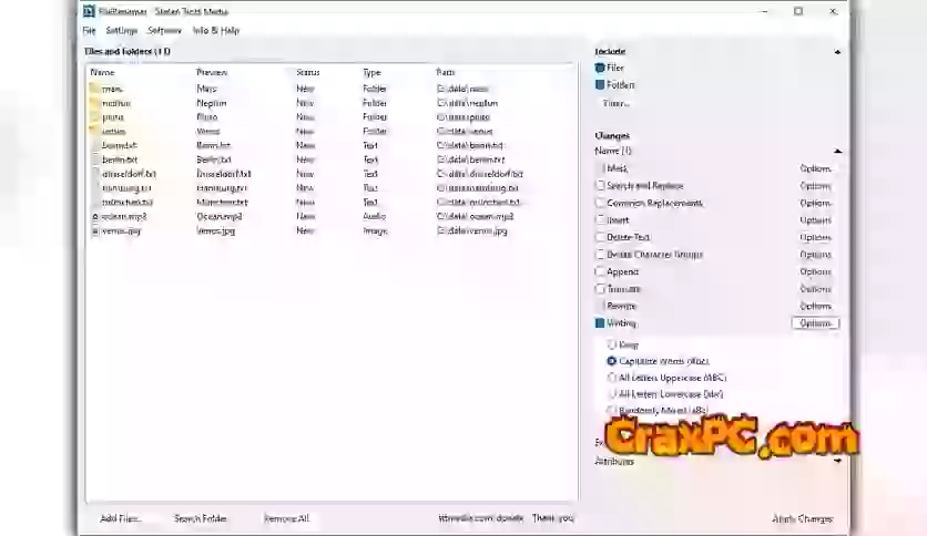 Certain character groups, such spaces, periods, hyphens, underscores, particular letter kinds, numerals, or special characters, can be removed or replaced. It also provides choices to change the writing style of file names, such as capitalizing the first letter of each word, changing to uppercase or lowercase, and more.